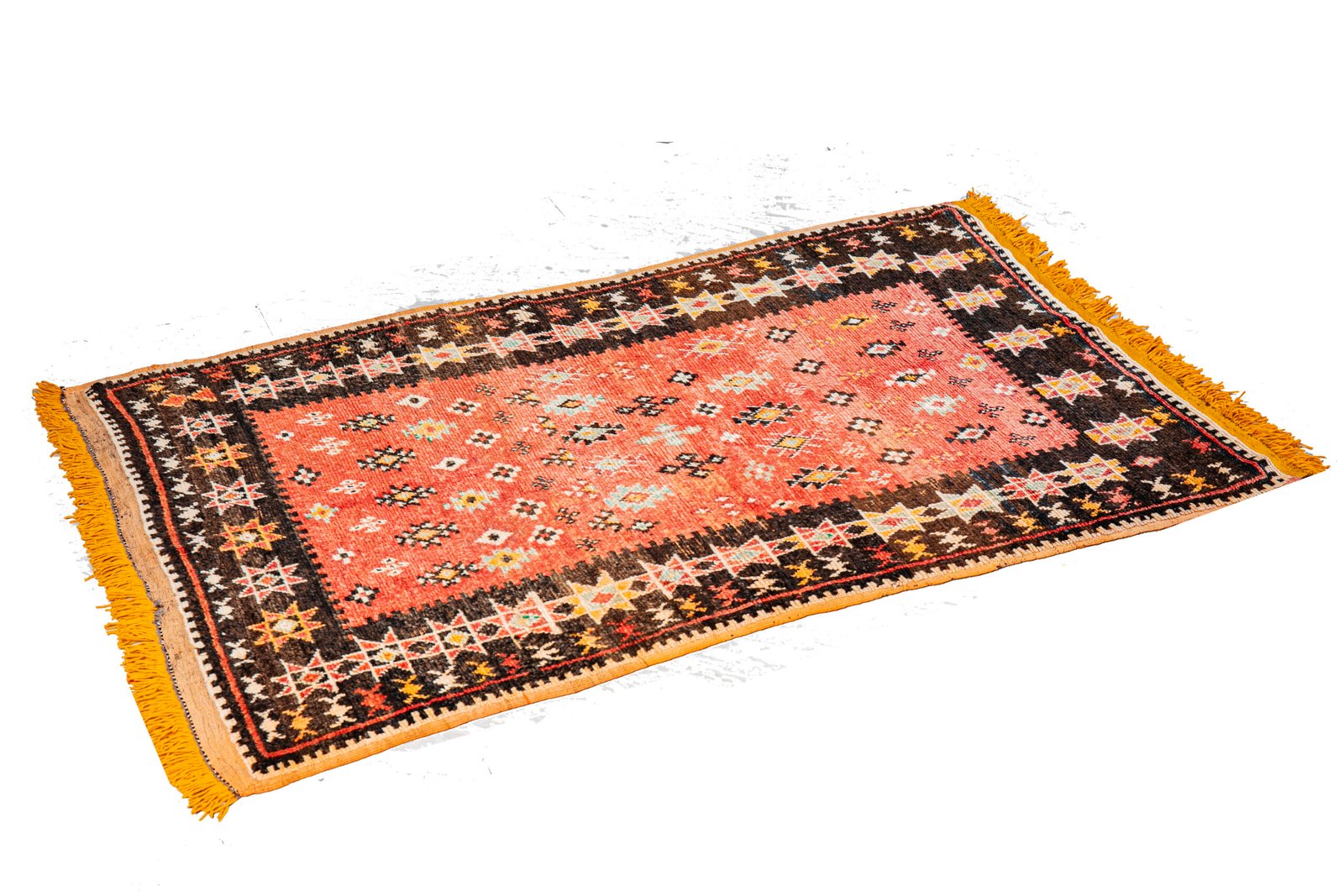 215×140 cm Originating from the Atlas region of Morocco, this traditional tribal rug features a sun-faded terracotta field adorned with star-like geometric motifs, framed by bold charcoal borders that evoke the raw spirit of nomadic design. Handwoven from natural wool, it retains an earthy, organic texture — making it an exceptional statement piece for refined living rooms, art-driven interiors, or curated bohemian luxury spaces seeking cultural depth and warmth. Мароккогийн Атласын бүс нутгаас гаралтай энэхүү уламжлалт овгийн хивс нь улаан өнгөн дээр талбайд од мэт геометрийн хээгээр чимэглэгдсэн бөгөөд нүүдэлчдийн загварын түүхий сэтгэлийг илтгэх тод хар хүрээтэй. Байгалийн ноосоор гараар нэхэгдсэн энэ хивс нь газарын өнгөтэй ижил бүтэцтэй бөгөөд нарийн зочны өрөө, эсвэл соёлын гүн ба дулааныг эрэлхийлдэг уран бохэмин тансаг орон зайд тохирно.