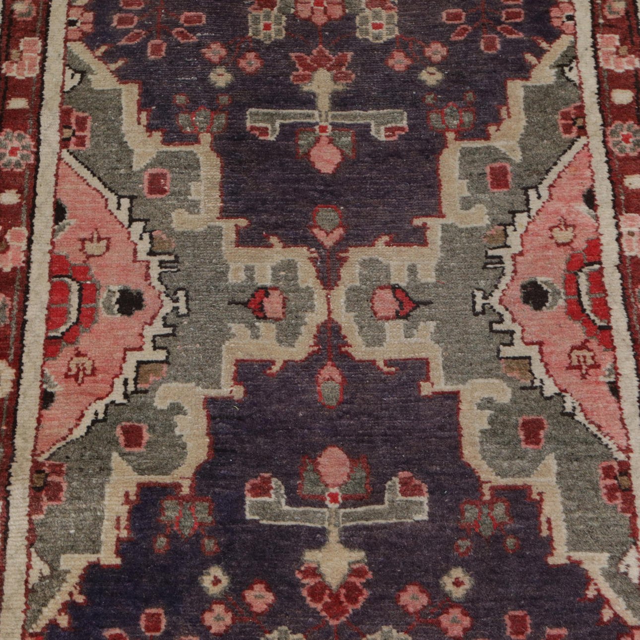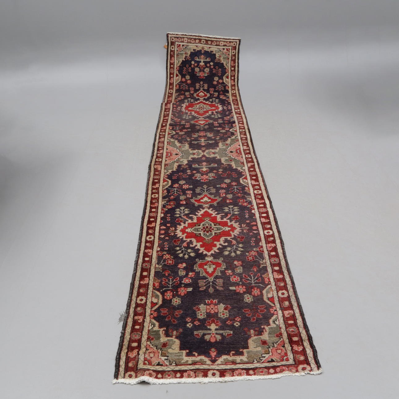 430x80cm. An original Hamadan village runner hand-knotted in Western Iran, featuring a dark indigo field with angular diamond medallions framed by brick-red borders. Its rich tribal character, strong visual rhythm, and durable wool structure make it a refined choice for hallways seeking warmth, tradition, and lasting elegance.translate in mongolia Ираны баруун хэсэгт гараар зангидсан Хамаданы тосгоны нарийн хивс, хар хөх өнгийн талбай дээр өнцөгт алмаазын хээнүүд, тоосгон улаан хүрээтэй. Бат бөх ноосон бүтэц нь энэхүү хивсийг коридорын дулаан, уламжлал, удаан хугацааны гоёмсог байдлыг эрэлхийлдэг боловсронгуй сонголт болгодог