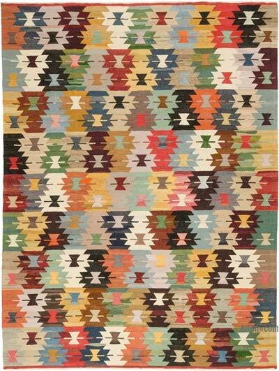 This modern Turkish kilim–inspired rug features a contemporary interpretation of traditional tribal motifs, expressed through rhythmic geometric forms and a refined multicolor palette. Handwoven with artisanal precision, it brings a sophisticated cultural accent to modern, bohemian, or art-driven interiors — offering both visual energy and elevated design character.
